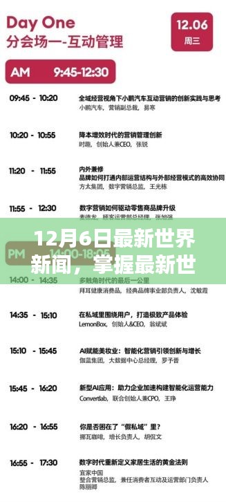 摘要:,,最新世界新聞入門到進(jìn)階指南(12月6日)。本文為初學(xué)者和進(jìn)階用戶提供最新世界新聞的獲取途徑和解讀方法。無論您是新聞新手還是資深愛好者,本文都能幫助您快速掌握最新國際動態(tài),讓您輕松了解世界各地的時事熱點。