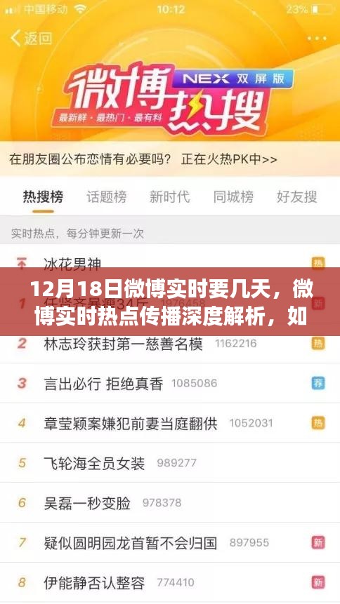 隨著互聯網的普及和社交媒體的興起,微博作為重要的信息傳播平臺,對于社會熱點事件的傳播起到了不可忽視的作用,尤其是在重大事件或特殊日期前后,微博上的實時信息傳播更是成為公眾關注的焦點,本文將圍繞“12月18日微博實時要幾天”這一話題展開論述,從不同角度審視微博實時熱點的傳播現象,并闡述個人觀點。