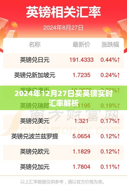 隨著全球化的不斷發(fā)展,國際金融市場日益活躍,匯率波動成為常態(tài),對于投資者而言,了解實時匯率信息至關(guān)重要,本文將圍繞“2024年12月27日買英鎊實時匯率”這一主題展開分析,幫助投資者把握市場動態(tài),做出明智的決策。