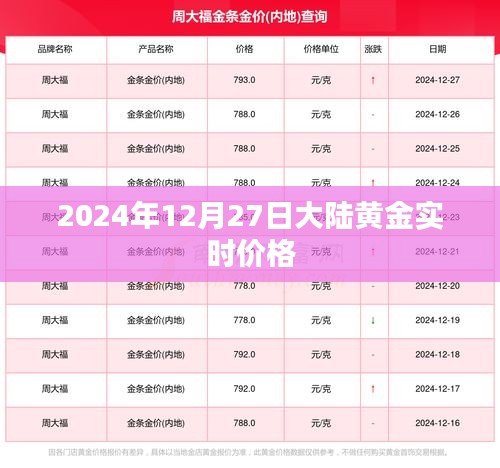 黃金作為一種珍貴的金屬,一直以來都是投資者關(guān)注的焦點,黃金價格的波動受到全球經(jīng)濟形勢、政治局勢、貨幣政策等多種因素的影響,本文將為您詳細介紹2024年12月27日大陸黃金的實時價格及相關(guān)影響因素。