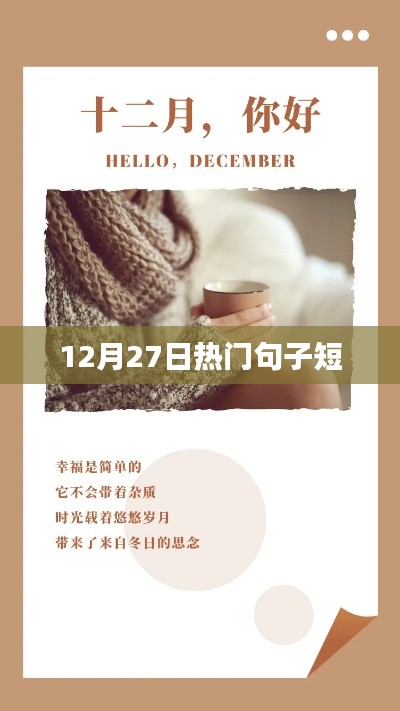 七、12月27日的熱門句子短而有力,它們蘊(yùn)含著深刻的內(nèi)涵和人生的智慧,這些句子成為了人們心中的溫暖和力量,鼓舞著人們在生活中不斷前行,在這個(gè)特殊的日子里,讓我們共同感受這些句子的魅力,讓它們陪伴我們度過一個(gè)美好的時(shí)光。