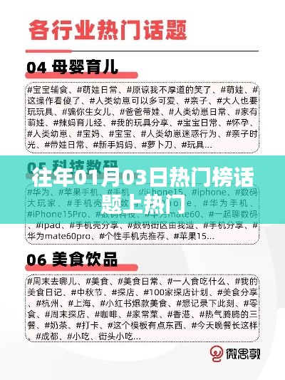 在數(shù)字化時代,社交媒體的影響力日益增強,熱門話題的傳播速度也越來越快,每年的1月3日,各大社交媒體平臺都會涌現(xiàn)出許多備受關(guān)注的話題,本文將帶你回顧往年這一天在熱門榜上占據(jù)一席之地的話題,分析它們的成因和影響力。