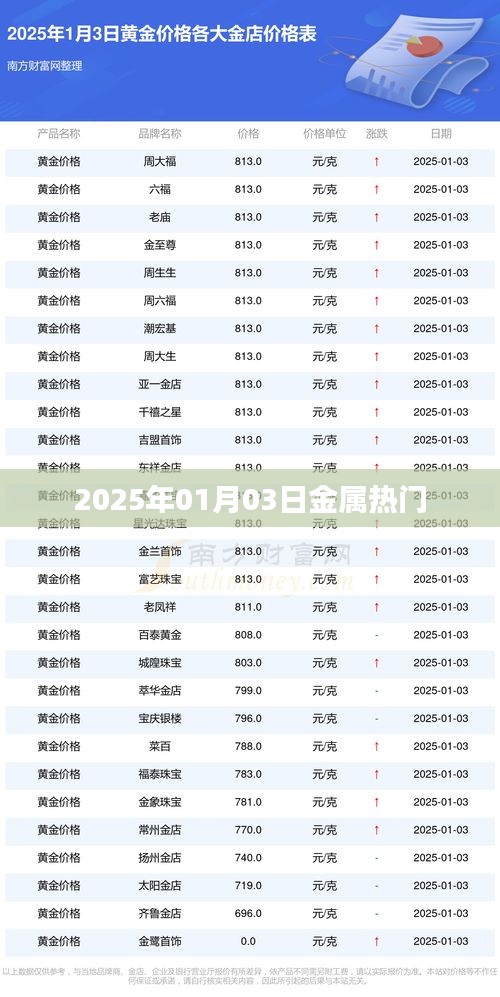 隨著科技的不斷進(jìn)步和全球經(jīng)濟(jì)的發(fā)展,金屬行業(yè)始終保持著旺盛的活力,在2025年1月3日這一天,金屬行業(yè)又迎來了新的發(fā)展機遇,本文將圍繞這一時間點的金屬熱門話題展開,探討金屬行業(yè)的發(fā)展趨勢、市場狀況以及技術(shù)創(chuàng)新等方面。