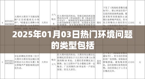 隨著全球環(huán)境形勢(shì)日益嚴(yán)峻,環(huán)境保護(hù)已成為全球關(guān)注的重點(diǎn)話(huà)題,2025年1月3日,世界各地的環(huán)境議題持續(xù)發(fā)酵并呈現(xiàn)出多樣化、復(fù)雜化的特點(diǎn),本文將探討在這一日期中,熱門(mén)環(huán)境問(wèn)題的類(lèi)型及其特點(diǎn)。