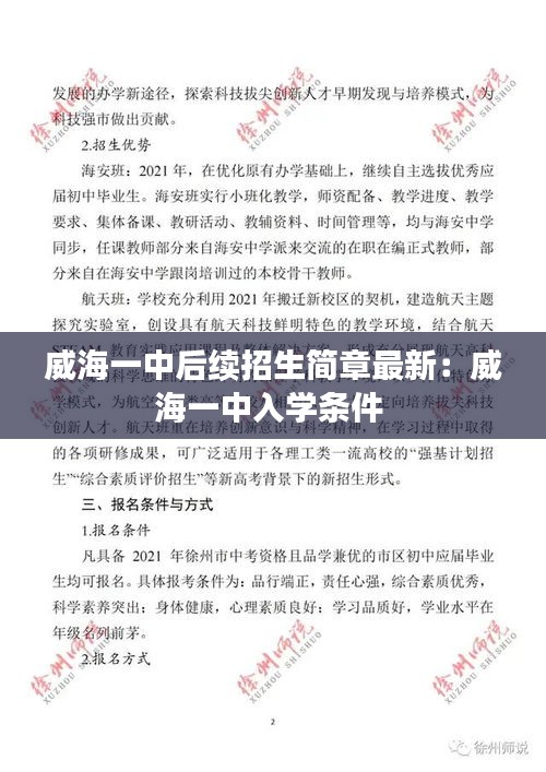 威海一中,作為威海市乃至山東省內(nèi)知名的高級(jí)中學(xué),一直以來都以其優(yōu)秀的教育教學(xué)質(zhì)量和嚴(yán)謹(jǐn)?shù)膶W(xué)風(fēng)著稱。隨著新學(xué)期的臨近,許多家長(zhǎng)和學(xué)子們都在關(guān)注著威海一中的后續(xù)招生簡(jiǎn)章。本文將為大家詳細(xì)介紹威海一中最新的招生政策及相關(guān)信息。