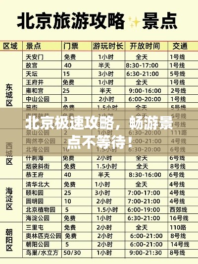 北京,中國的首都,一座博大精深、充滿魅力的城市,對于許多游客來說,時間總是過得飛快,如何在有限的時間里盡可能多地領略到北京的魅力呢?下面是一份“北京速度旅游攻略”,幫助你高效游覽北京。
