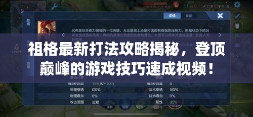為了更直觀地了解祖格最新打法,觀看攻略視頻是一個不錯的選擇,現(xiàn)在網(wǎng)絡(luò)上有很多游戲達(dá)人會分享他們的游戲經(jīng)驗,包括最新的打法、英雄出裝、技能加點等,通過搜索“祖格最新打法攻略視頻”,你可以找到這些視頻,以便更好地掌握游戲技巧。