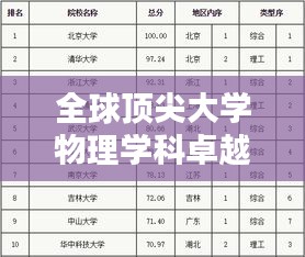 世界大學排名是衡量全球高等教育機構(gòu)綜合實力的重要指標之一,在物理學科方面,全球頂尖大學擁有卓越的科研實力和聲譽,為全球物理學界培養(yǎng)了大量優(yōu)秀人才,隨著科技的不斷進步和全球化的深入發(fā)展,全球大學在物理學科的競爭與合作將更加激烈,推動物理學研究的突破和創(chuàng)新。