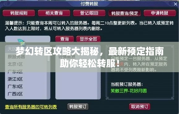 夢幻轉(zhuǎn)區(qū)攻略大揭秘,最新預(yù)定指南助你輕松轉(zhuǎn)服!