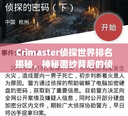 Crimaster偵探世界排名揭秘,神秘面紗背后的偵探江湖探索