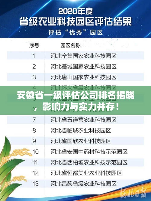 是對安徽省一級評估公司的排名及其影響力的簡要探討,隨著市場的不斷變化和行業(yè)的發(fā)展,希望這些公司能夠不斷創(chuàng)新,為安徽省乃至全國的評估行業(yè)做出更大的貢獻。
