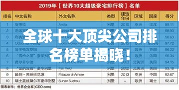 在全球經(jīng)濟(jì)日益繁榮的今天,各大公司的競(jìng)爭(zhēng)也日益激烈,它們以其卓越的創(chuàng)新力、強(qiáng)大的競(jìng)爭(zhēng)力、優(yōu)秀的企業(yè)文化和卓越的產(chǎn)品或服務(wù),贏得了全球消費(fèi)者的信賴和喜愛,我們將揭曉全球十大最好的公司排名榜。