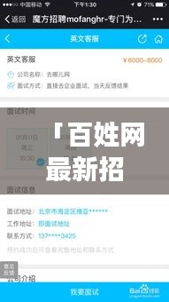 通過百姓網(wǎng)和百度搜索引擎的結(jié)合,您可以輕松獲取最新的招聘信息,在求職過程中,要注意信息的真實(shí)性和時(shí)效性,保護(hù)個(gè)人信息,保持謹(jǐn)慎,希望您能通過百姓網(wǎng)和百度找到合適的工作機(jī)會,實(shí)現(xiàn)自己的職業(yè)夢想。