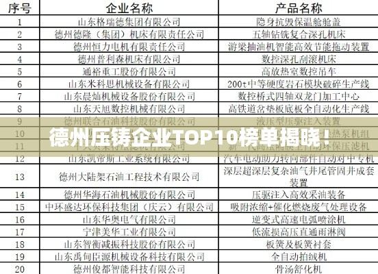 德州壓鑄企業(yè)TOP10榜單揭曉!