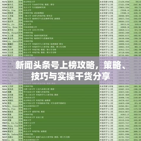 隨著移動互聯(lián)網(wǎng)的普及,新聞頭條號已成為信息傳播的重要渠道之一,越來越多的個人和組織希望通過新聞頭條號吸引關(guān)注,擴(kuò)大影響力,本文將介紹新聞頭條號的上榜策略、技巧及最佳實踐,幫助讀者更好地利用這一平臺。
