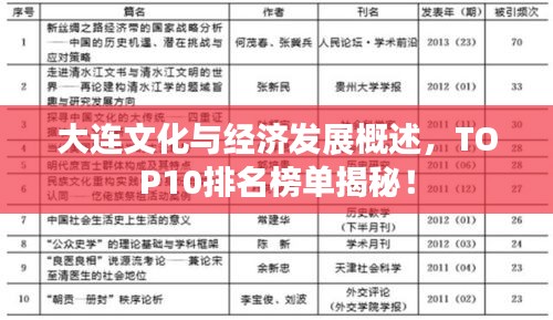 大連文化與經(jīng)濟(jì)發(fā)展概述,TOP10排名榜單揭秘!