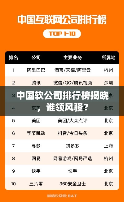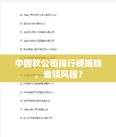 隨著信息技術的迅猛發(fā)展,軟件行業(yè)已經成為當今社會的核心產業(yè)之一,眾多軟件公司如雨后春筍般嶄露頭角,憑借創(chuàng)新的技術、優(yōu)質的服務和良好的口碑贏得了市場的認可,本文將為您介紹中國軟件公司的排名及其相關情況。