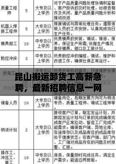 隨著物流行業(yè)的快速發(fā)展,搬運(yùn)卸貨工成為了不可或缺的重要角色,在昆山市,這一需求尤為旺盛,本文將介紹昆山搬運(yùn)卸貨工招聘的最新情況,為廣大求職者提供相關(guān)信息。