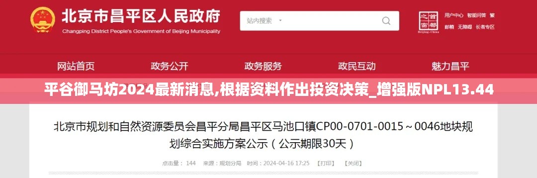 平谷御馬坊2024最新消息,根據(jù)資料作出投資決策_增強版NPL13.44