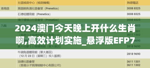 2024澳門今天晚上開什么生肖啊,高效計劃實施_懸浮版EFP7.54