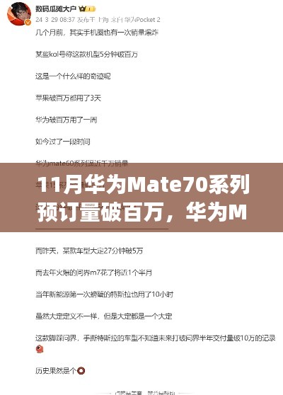 隨著秋風(fēng)漸起,落葉紛飛之際,一則關(guān)于華為Mate70系列的喜訊在朋友圈悄然傳開(kāi)——它的預(yù)訂量竟然在短短幾天內(nèi)破百萬(wàn)了!這個(gè)消息不僅讓科技迷們興奮不已,也讓普通大眾為之側(cè)目,在這個(gè)數(shù)字的背后,有一個(gè)名叫小明的普通年輕人與他的朋友們之間發(fā)生的溫馨故事。