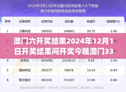 隨著澳門六開獎的日益臨近,眾多彩民的目光聚焦于即將到來的2024年12月1日的開獎結果,這一日的開獎不僅關乎彩民的期待,更是彩票市場購彩趨勢的重要風向標,為了更準確地預測這一日的開獎結果,我們可以從歷史數(shù)據(jù)出發(fā),進行深入的分析。