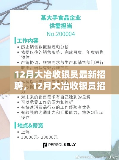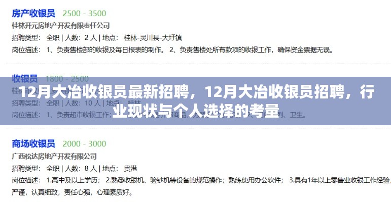 隨著經(jīng)濟的不斷發(fā)展,收銀員這一職業(yè)也在逐漸轉(zhuǎn)型升級,大冶地區(qū)作為商業(yè)活動的重要區(qū)域之一,其收銀員招聘動態(tài)引起了廣泛關(guān)注,本文將圍繞“12月大冶收銀員最新招聘”這一主題,探討收銀員行業(yè)的現(xiàn)狀、正反雙方觀點以及個人的立場和理由。
